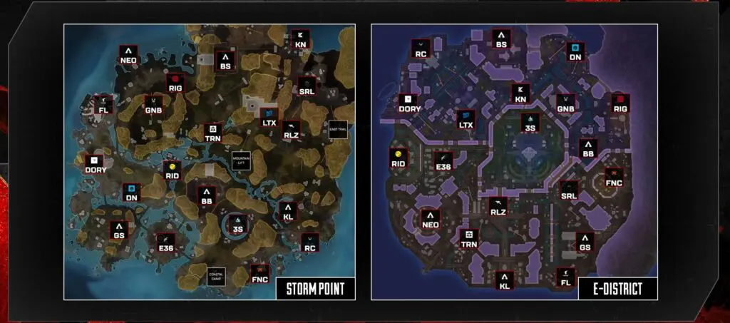 ALGS Year4 プロリーグスプリット2からの大きな変更点として、POI(Point of Interest,地図上の特定のポイント)ドラフトが導入されることとなりました。
