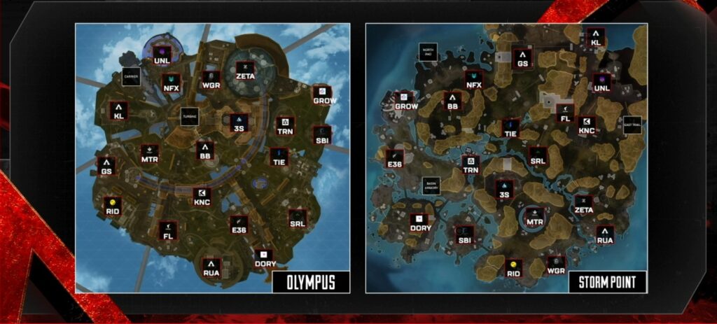 ALGS Year4 プロリーグスプリット2からの大きな変更点として、POI(Point of Interest,地図上の特定のポイント)ドラフトが導入されることとなりました。